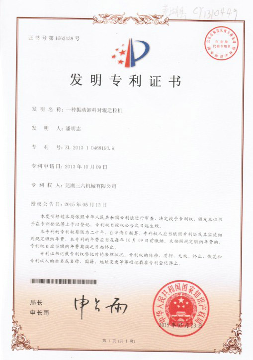 • 發(fā)明專利證書